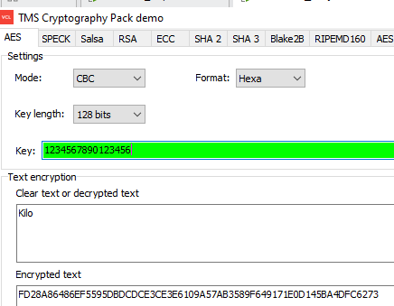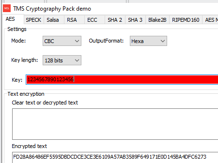 On the demo projects installed along with the setup, the keylength is required to be 32 chars (128 bits = 16 chars)