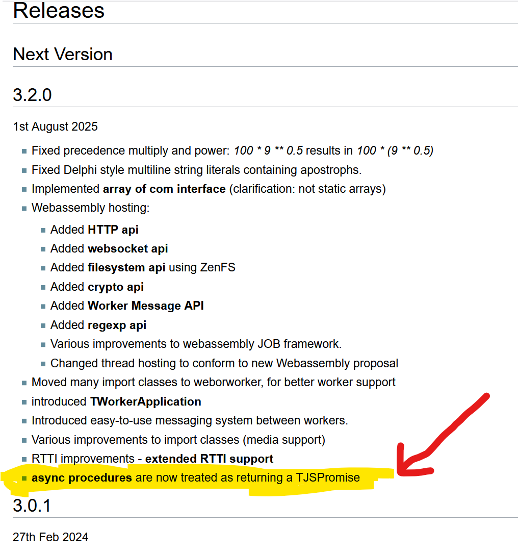 The latest pas2js transpiler is more strict wrt async functions and check more strictly that these return a TJSPromise. So, the change to make TJSPromise the result type is correct. With TAwait, this can be caught with: