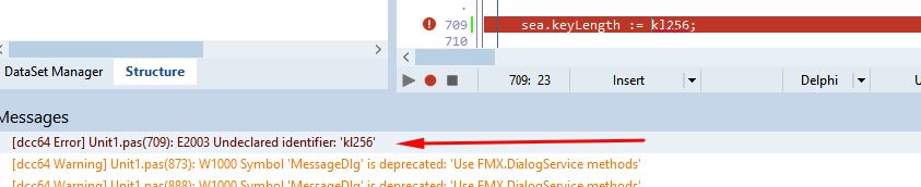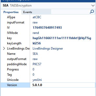 Bernard. I have the same error. I just don't want to create another thread. Previously, key was equal to 32 characters. On the client side, files were encrypted with this key. Today the same error was updated that the length should be 16. At the same time, the TAESEncryption component lost the keyLength object inspector field. And if I forcibly specify keyLength := kl256 in the code, Delphi does not compile. I also read this thread: AES decryption fails with invalid key length - #11 by Fab