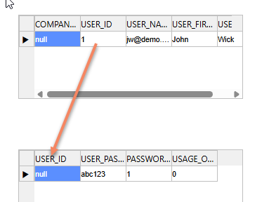 I cannot get any values returned for USER_PASSWORDS.USER_ID. The value is always NULL.