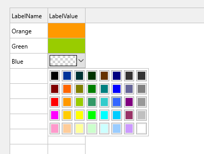I only show the LabelName . The column's Editor is set to colorPicker, but when the user sets the color, the color value is set to LabelColor field.