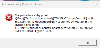 I attempted to install the FNC Cloud Pack trial 3.5.0.2, and now Delphi won't load the FNC UI Pack. I uninstalled the FNC Cloud Pack which did not help. I then reinstalled the FNC UI Pack, which also did not help. Finally I reinstalled the FNC Core which now seems to be back to normal. This was the error:
