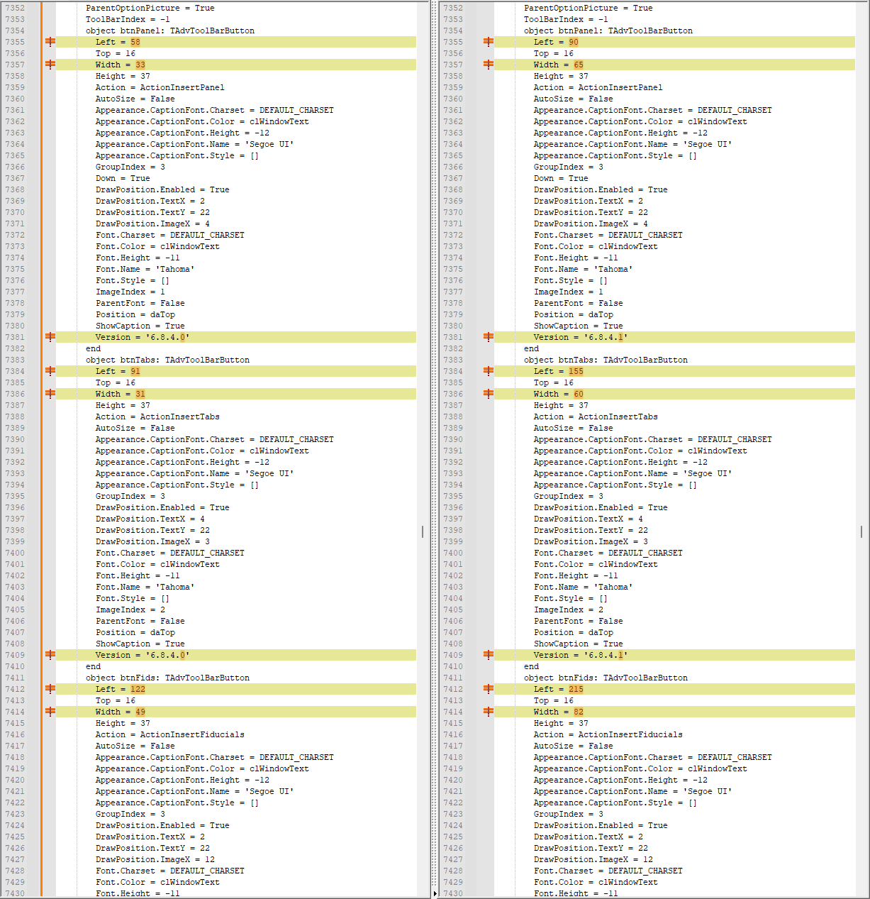 See attached picture. If I open a project and change one property and then save. The left and width property of all the TAdvToolBarButtons and TAdvToolBars changes