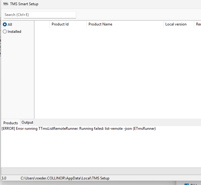 [ERROR] Error running TTmsListRemoteRunner: Running failed: list-remote -json (ETmsRunner)