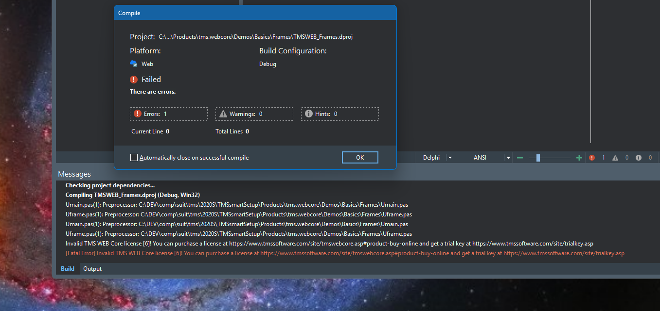 However, when attempting to run any webcore demo or my own programs, it fails with a license missing error in the IDE.