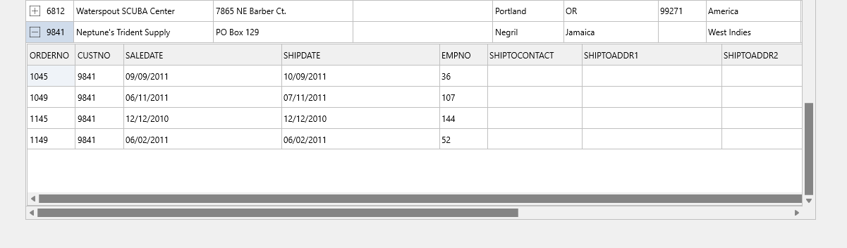 On the last master datagrid row, when I click to expand button to show detail datagrid rows, No data shows in grid, See attached pictures of it. However, if I turn the mouse wheel the rows show.