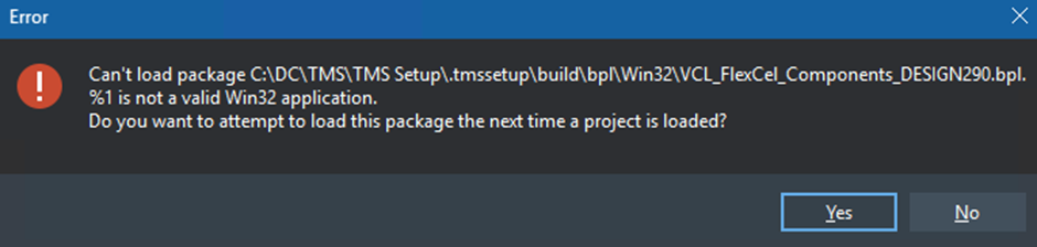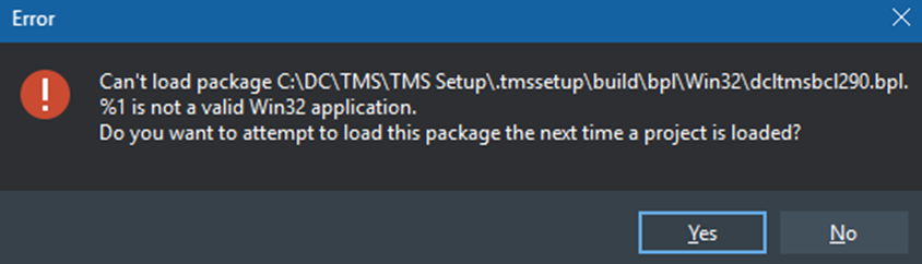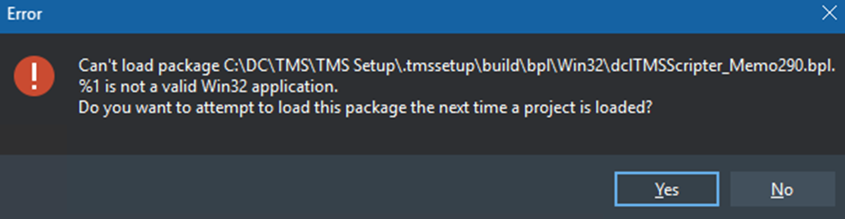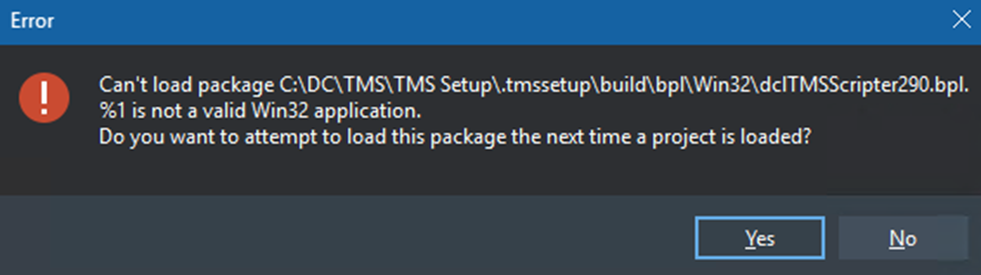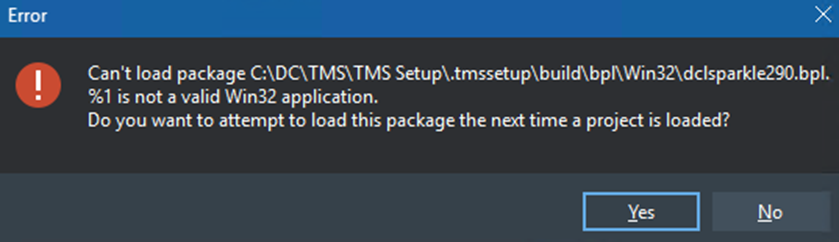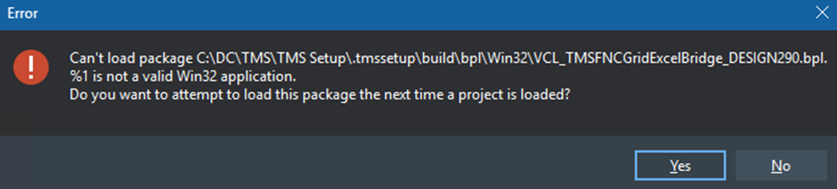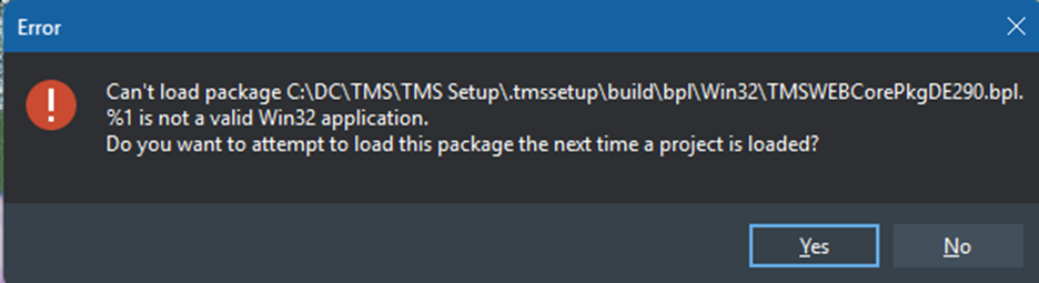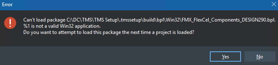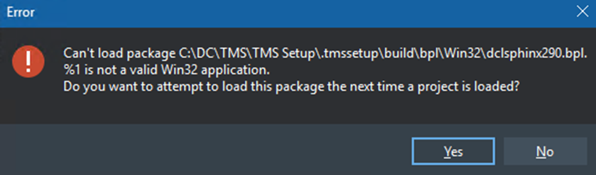 However, when I start the Delphi IDE I’m plagued with error messages:
