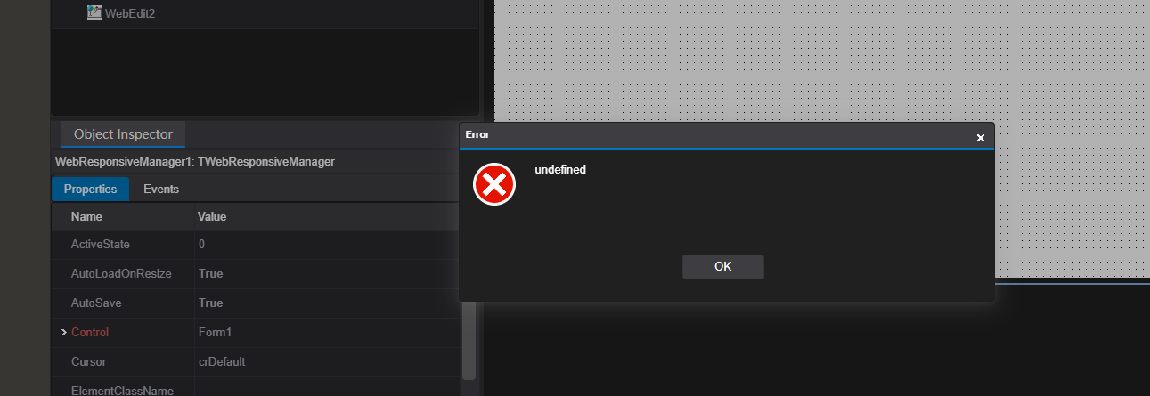 The problem is that after creating them, I can't switch between states; I'm getting error after error. When compiling, I also get errors, and when editing the DFM file, I see that the "passwordchar" property of the Twebedit contains strange characters. Changing it to * makes the project compile, but the states are not respected. I'm attaching a simple test project and some screenshots showing the problems.