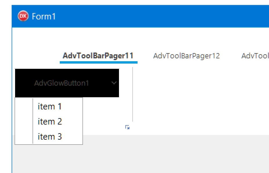 I have set up a TAdvGlowButton as a drop down button; DropDownButton = TRUE, DropDownMenu = (a TAdvPopupmenu).