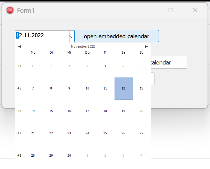 _datePickerPopup->Visible = false; //< I dont use the Calenderedit, but the popup. The calender is opened by calling ->DropDown when needed