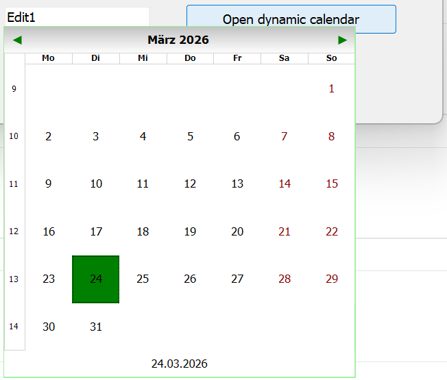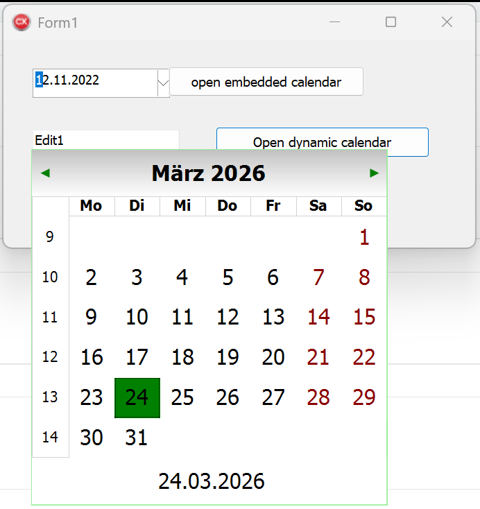 I am using the TAdvSmoothDatePicker and setting the size of the calendar and the font sizes depending on the current font size of the form.