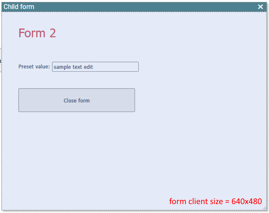 When creating and displaying a form the height of the form does not include title bar so you have to add 25 to the height to get the correct height of the form. This was an issue when trying to display the form at the prior left, top, width, height that was stored when the form was closed.