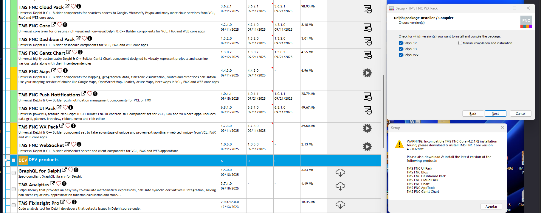 The installer ask for an old TMS FNX Core version.