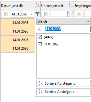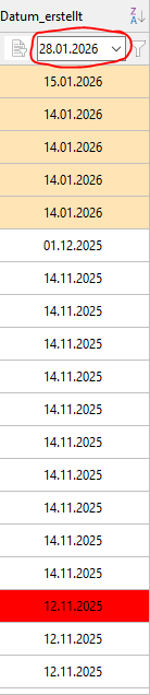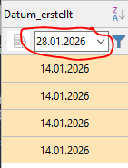 If I filter for January 14, 2026 using the datetimepicker, the value is grayed out again.