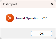 Executing this code gives -316 error: