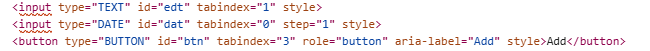 We use html templates extensively and set the tabindex for the fields within the HTML (this is an amended form form tms.webcore\Demos\Basics\HTMLTemplate) :
