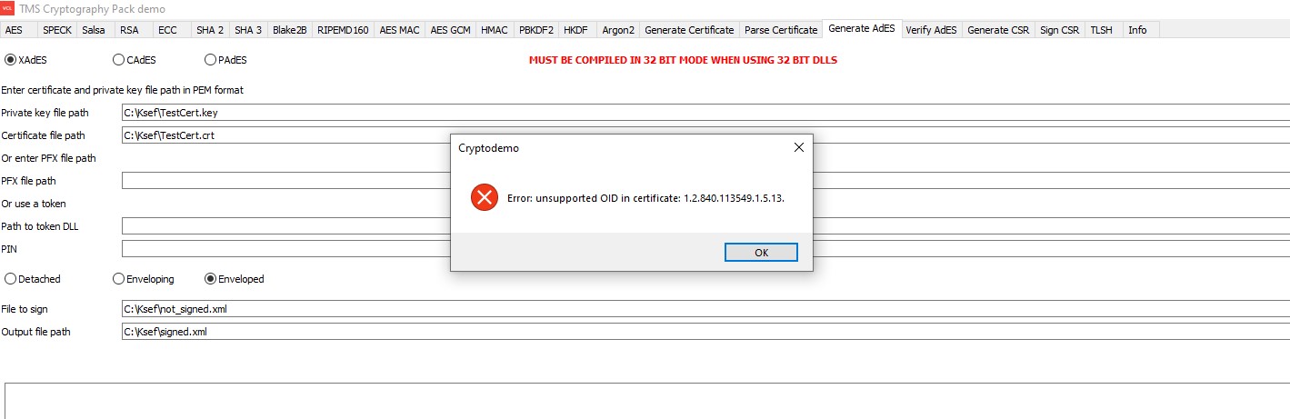 When I try to generate Xades signature on Demo project i get error