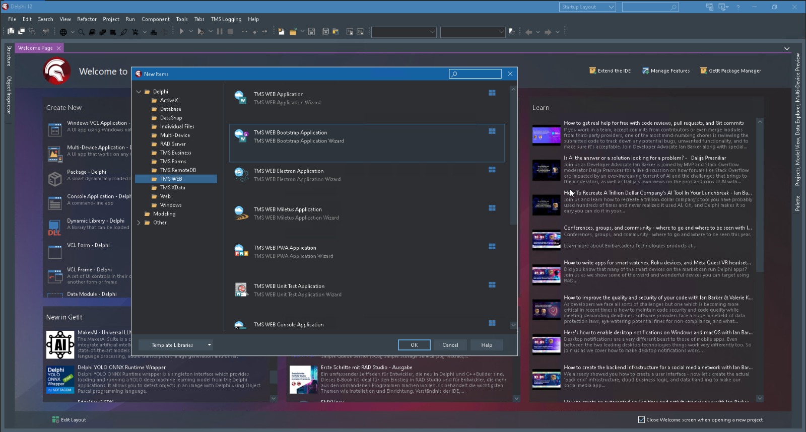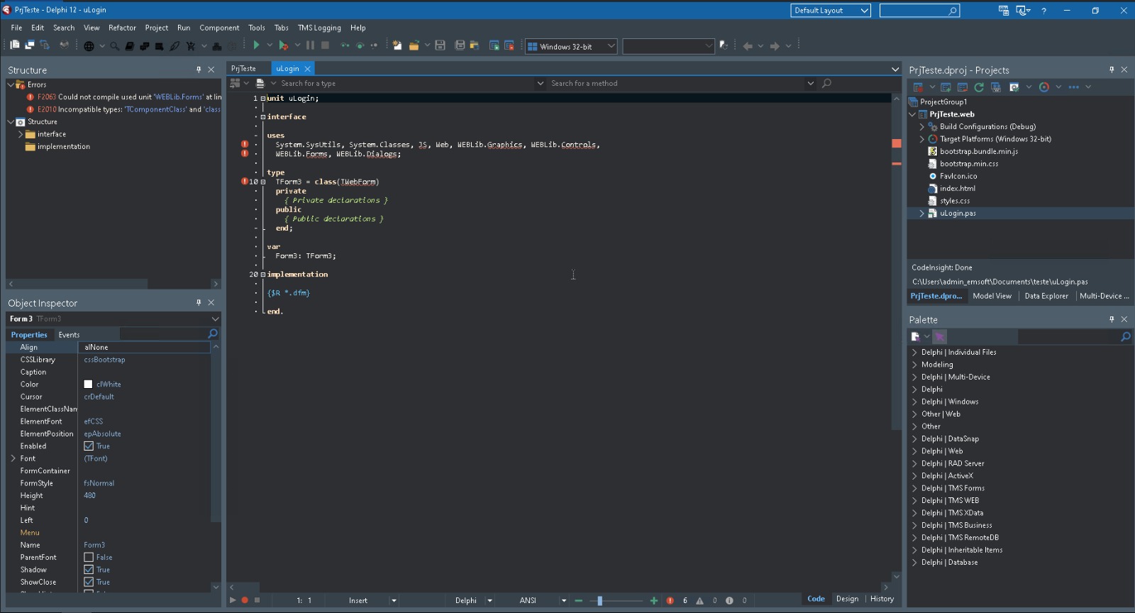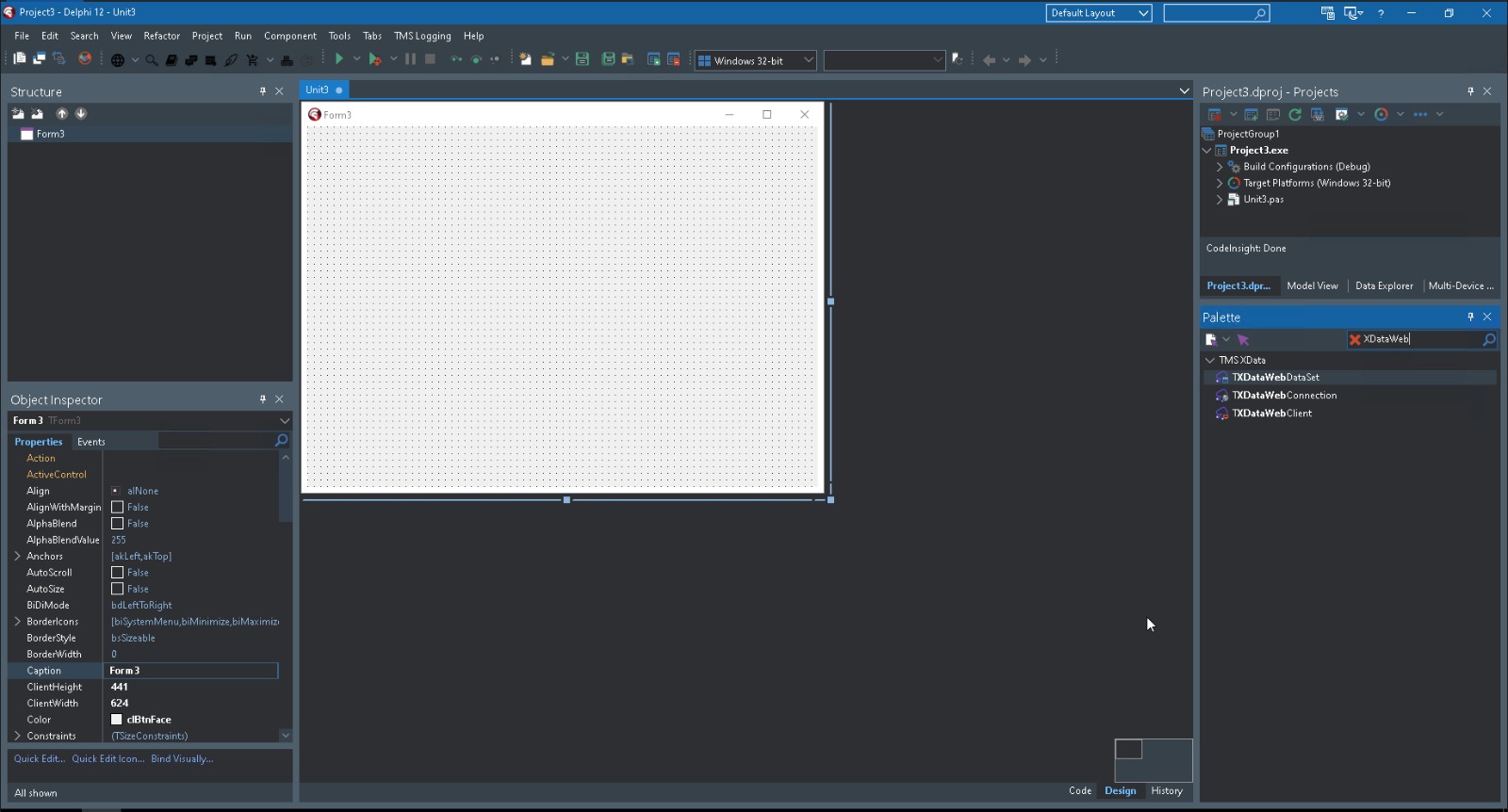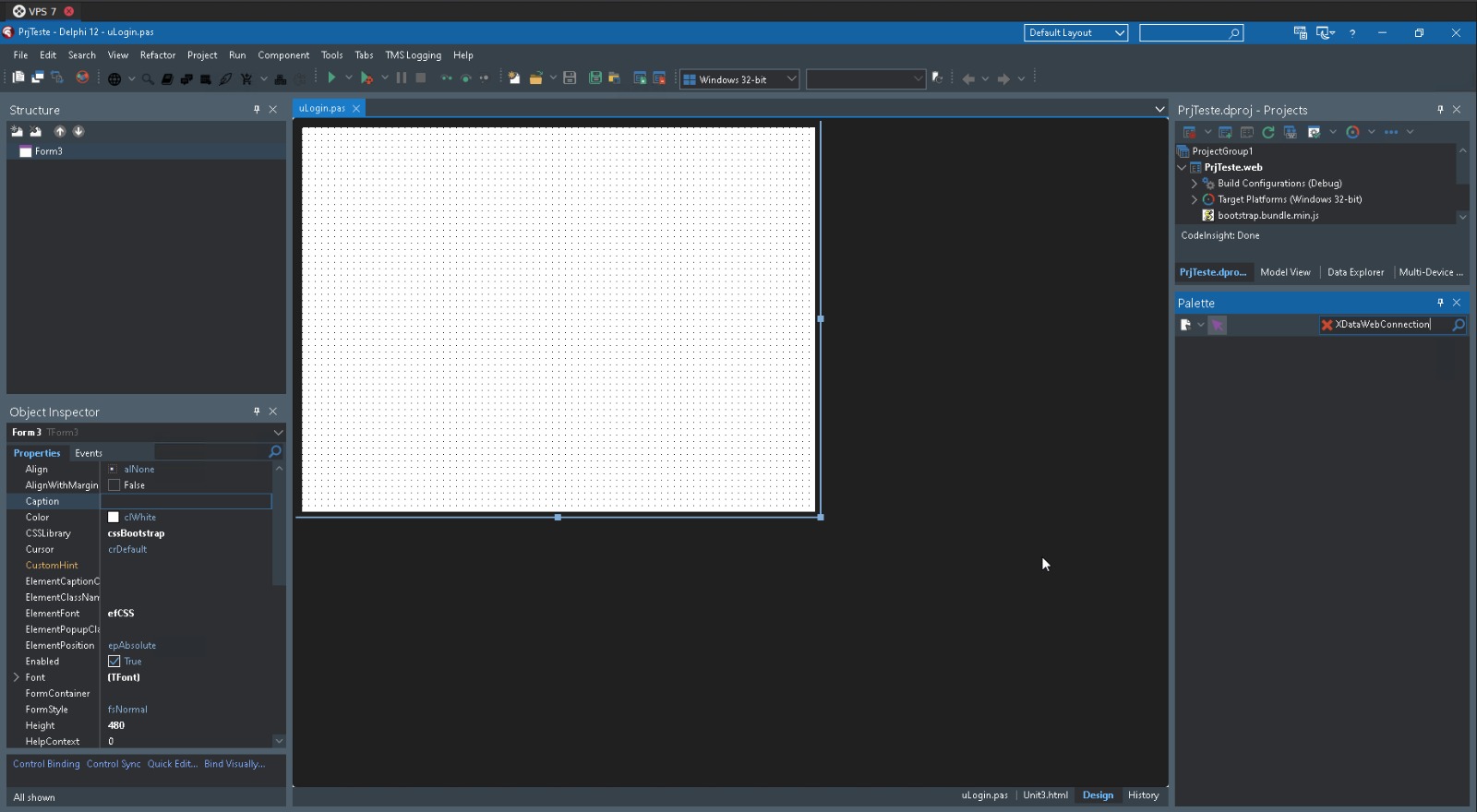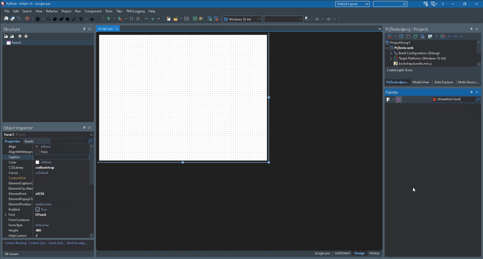 I created a project using the Delphi TMS Web Application wizard and I’m working with a TWebForm.